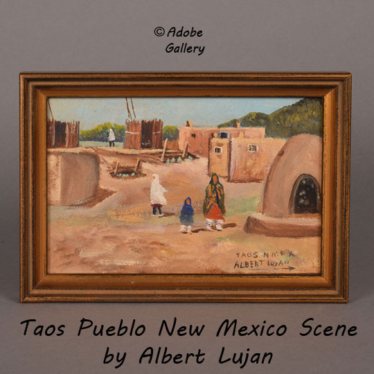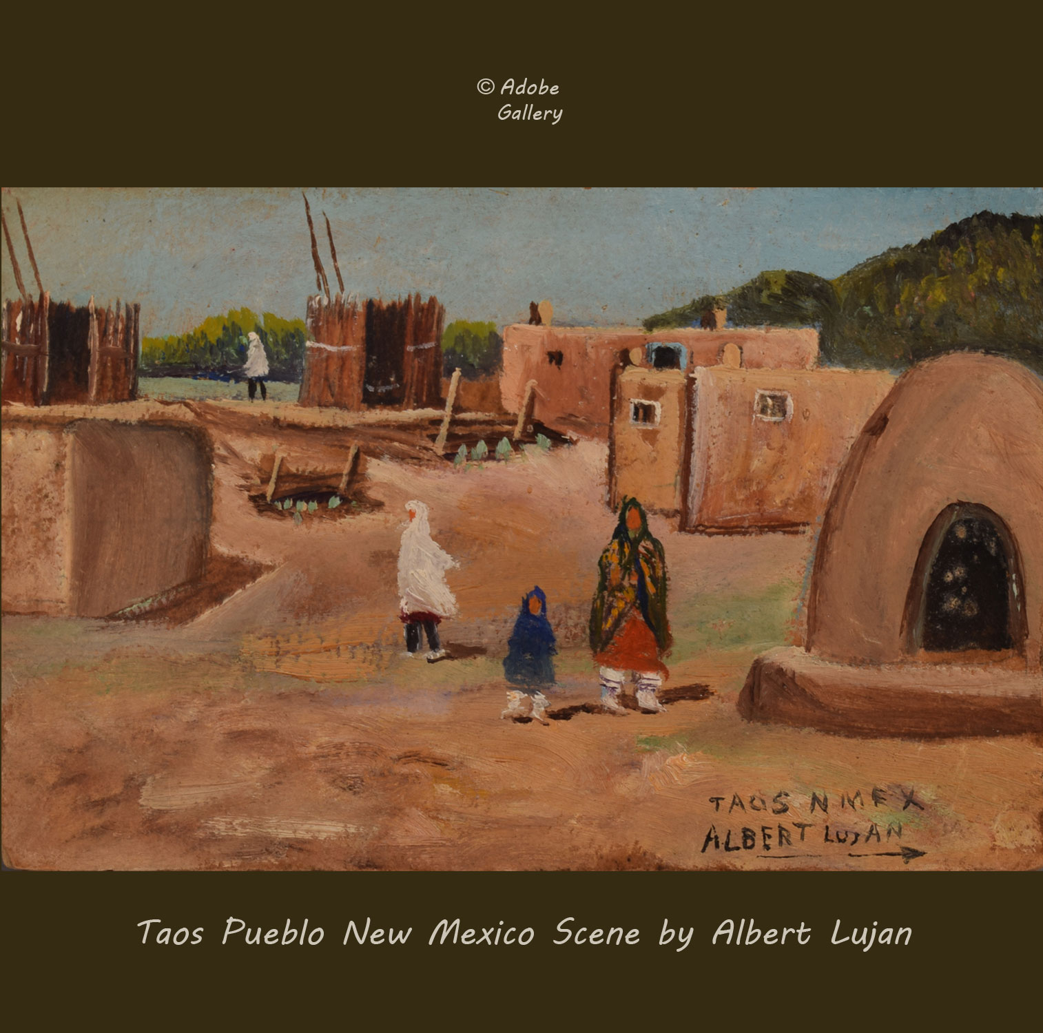 Provenance: this Taos Pueblo New Mexico Scene by Albert Lujan is from a private collection