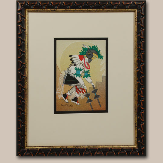 Condition: The Tewa Pueblo Ram Dancer Painting appears to be in original excellent condition. It is framed with acid-free materials and has UV protective glass.