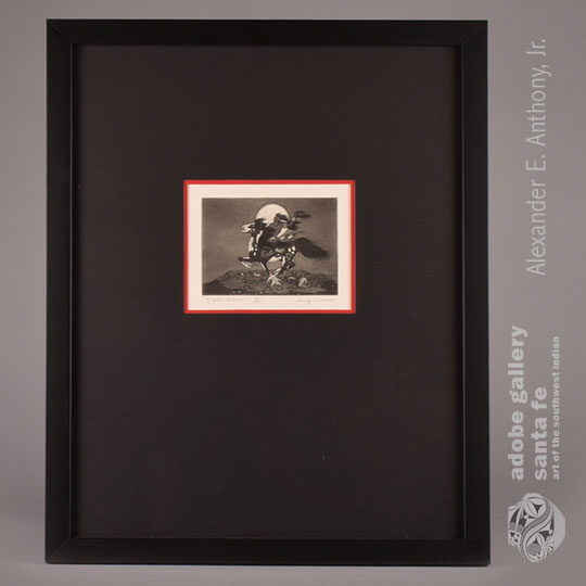 Potawatomi Artist Woody Crumbo Etching titled NIGHT RIDER [SOLD]