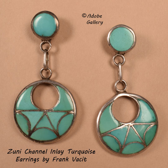 Provenance: these Zuni Pueblo Channel Inlay Turquoise Earrings by Frank Vacit are from a private collection