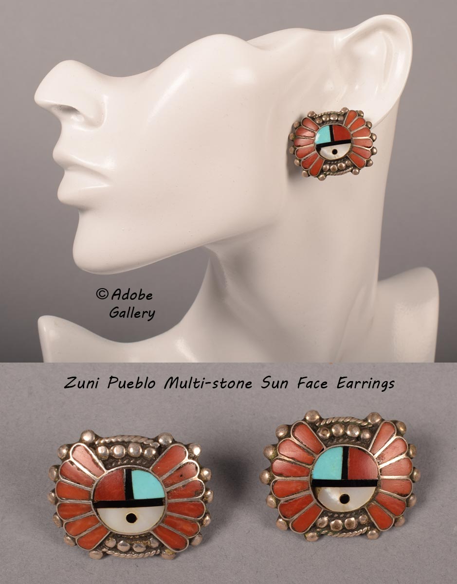 Provenance: these Zuni Pueblo Multi-stone Sun Face Earrings are from the collection of a client from Colorado