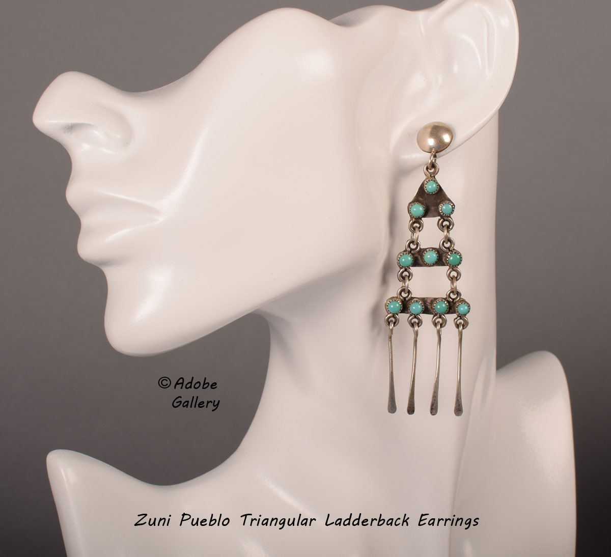 Provenance: these Zuni Pueblo Triangular Ladderback Turquoise Earrings are from a client of Adobe Gallery
