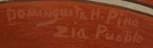 Dominguita H. Pino, Zia Pueblo,: traditional polychrome ollas, jars, and bowls. Zia is a very small pueblo and there are few potters. Those who do make pottery do a very good job of it. It is usually very well formed and beautifully painted to perfection.