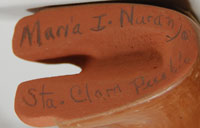 The name Margarita Naranjo from Santa Clara Pueblo New Mexico is not a potter that's recorded in the standard published reference books. Except for one which does list a potter by that name-it appears that she was an older potter whom no one at the pueblo recalls. Several contemporary potters at Santa Clara Pueblo have stated that Margarita was Maria I. Naranjo. Margarita was an earlier name she used.