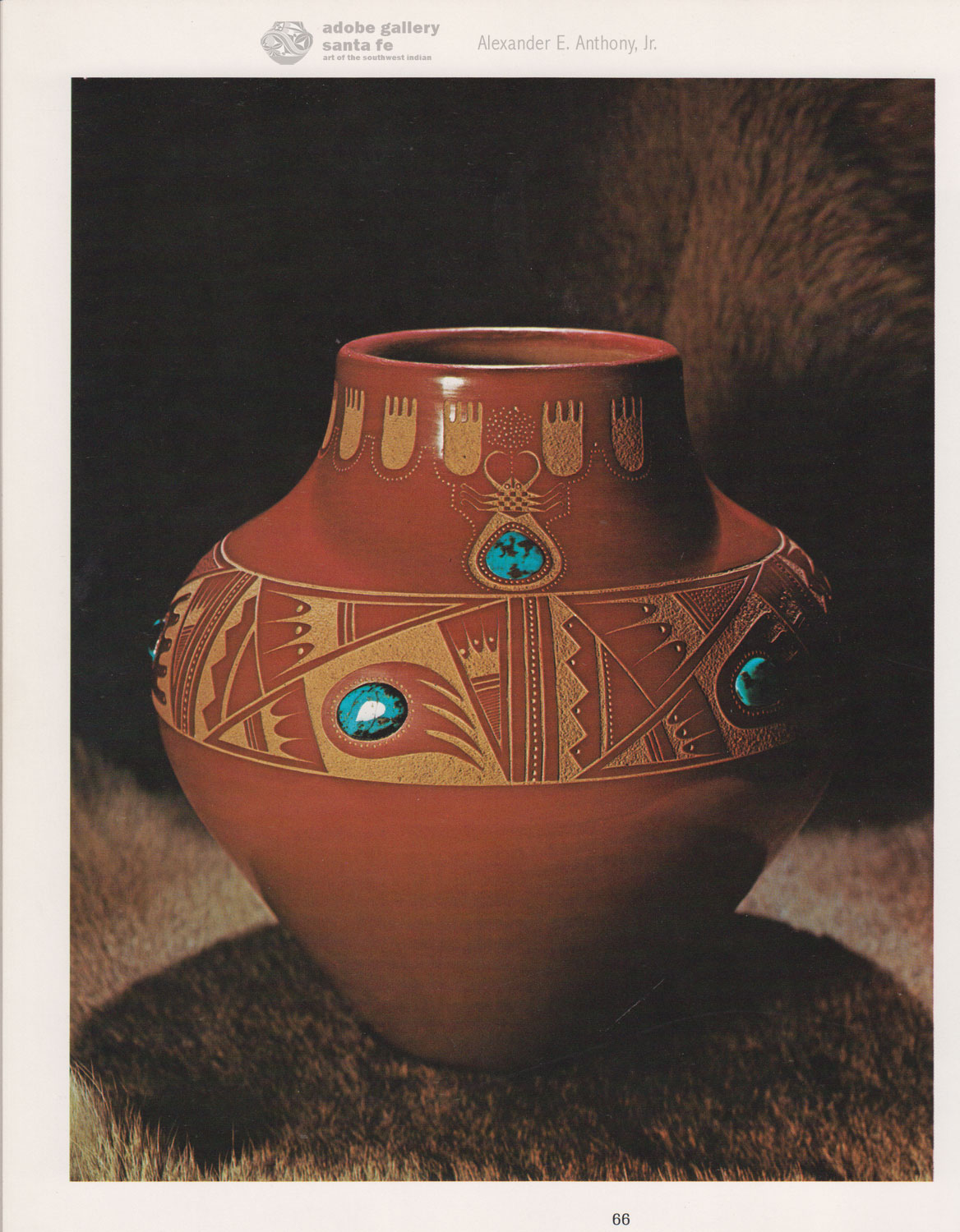 There are full-page photographs of such beauty, color and detail that you will want to reach out to touch the varied surfaces, to follow the lovely forms and trace the intriguing designs of these masterpieces of the Indian pottery makers of the Americsn Southwest, artists of mother earth for almost two thousand years. You will learn of clays and colors and the traditional methods of hand-forming, finishing and firing. You will see the exciting creations of contemporary craftsmen and you will discover pottery treasures designed by the women of prehistoric villages and centuries-old pueblos, treasures which fired the imagination of Maria of San Ildefonso and Nampeyo of Hano whose creative artistry continue to inspire the potters of today.