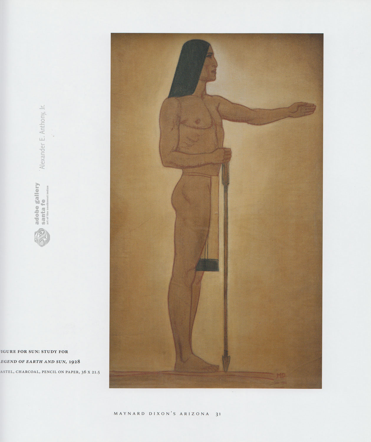 “The California-born [Maynard] Dixon (1875-1946) first traveled to Arizona in 1900 to experience what he believed was a vanishing West. Amid the mesas, canyons, and desertlands of the region he found visual inspiration and a spiritual solace that would shape both his painting and his life. His response to Arizona’s natural and cultural landscapes would fuel the evolution of a powerful personal style; the place would ultimately become both an aesthetic and personal refuge.”